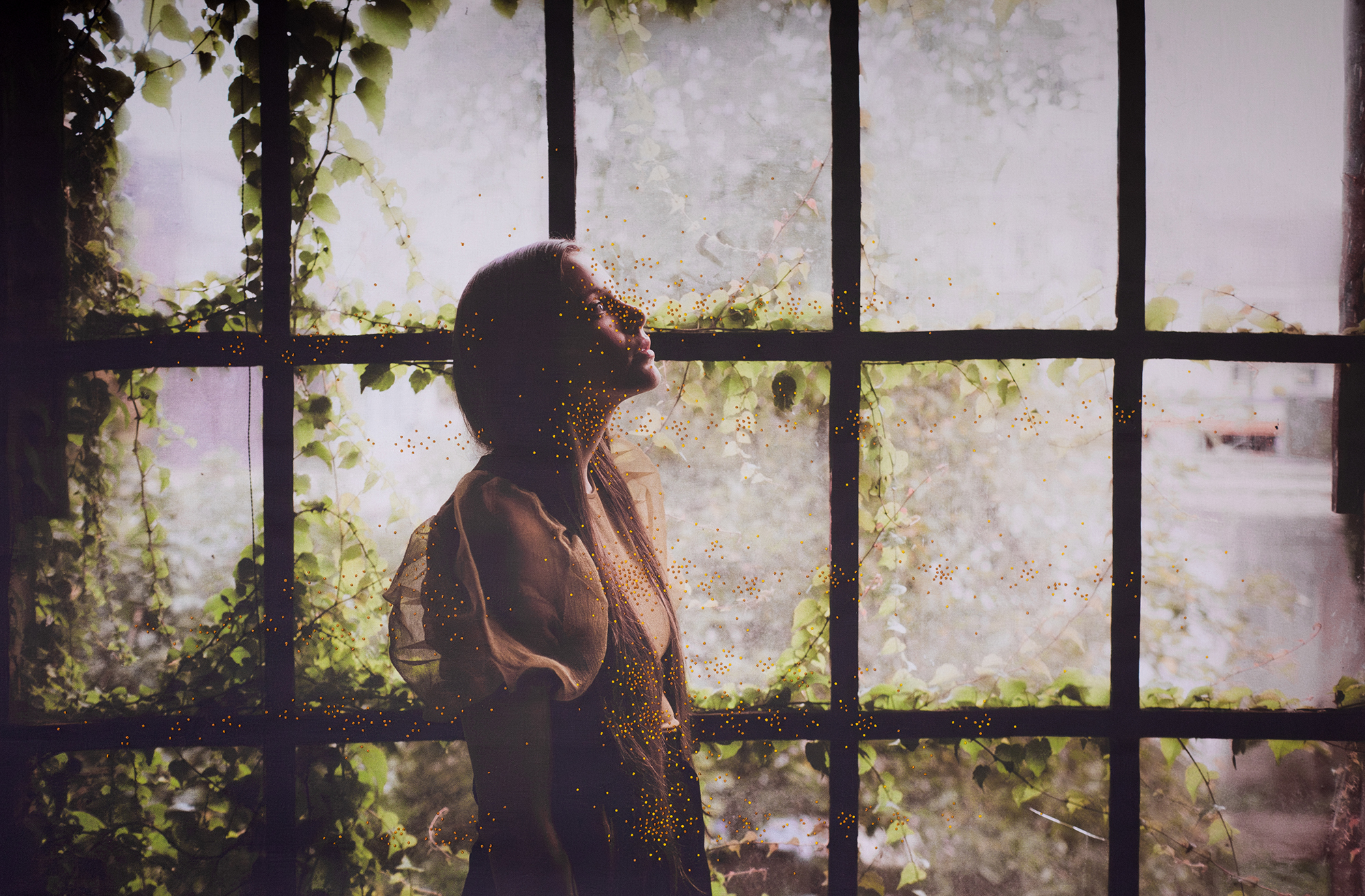 Jeannine Unsen portrays women who seem to stand still in carefully staged, intimate settings and raise questions about identity and vulnerability - more precisely, the archetype of the "wise woman". The timeless contexts in which the figures reveal themselves are the result of a close collaboration between the artist and her model, exploring the latter's mystical feminine nature: a reflection on our longing for spiritual connection and the deeply human need to belong. The carefully crafted process of capturing the portrait is of particular significance as it explores our ability to engage with stillness and introspection. In order to materialise the intangible vibration that emanates from each person, the artist embroiders the "corpus" with gestures and memories through hand-stitched embroidery.